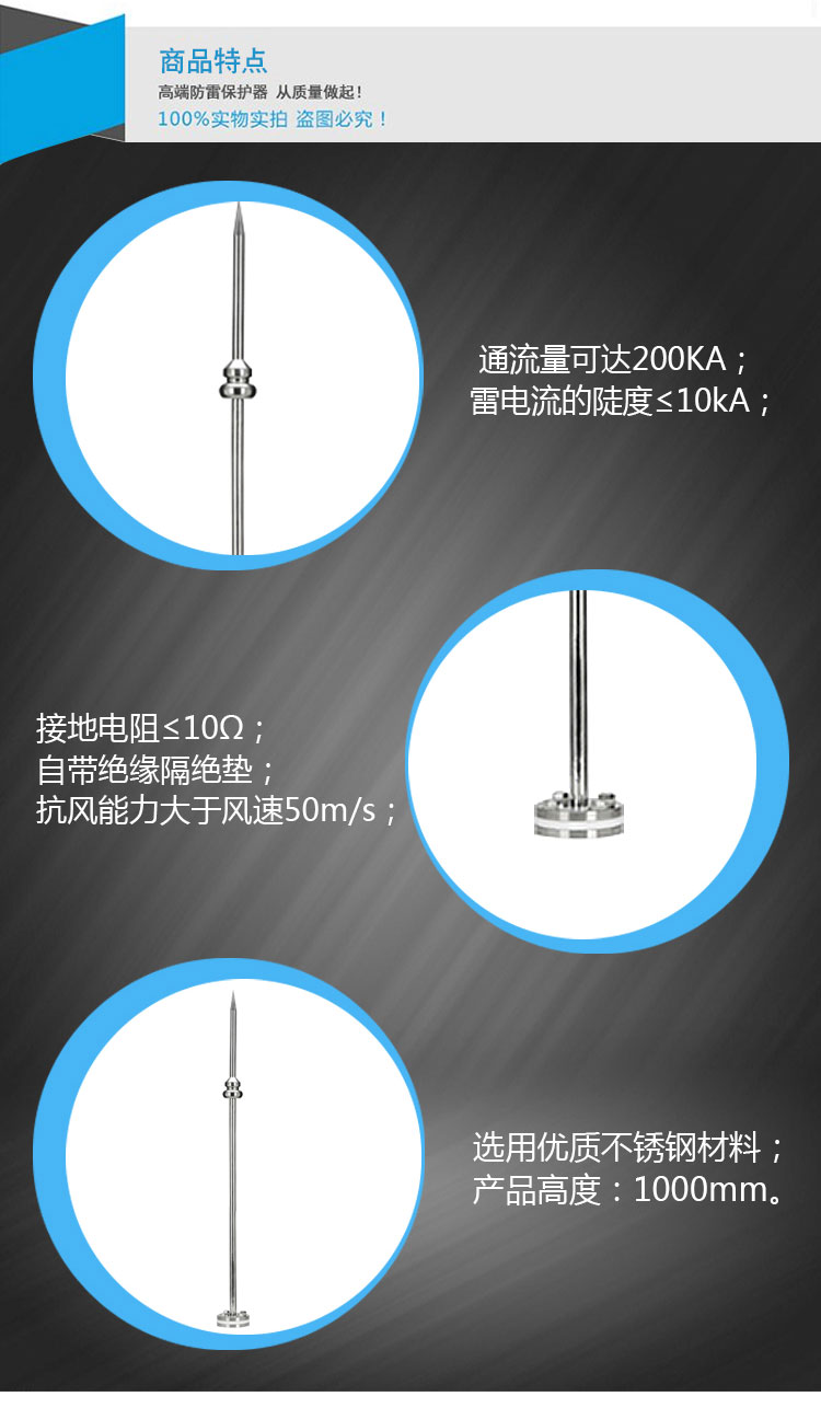 2)安裝避雷針時要連接可靠;