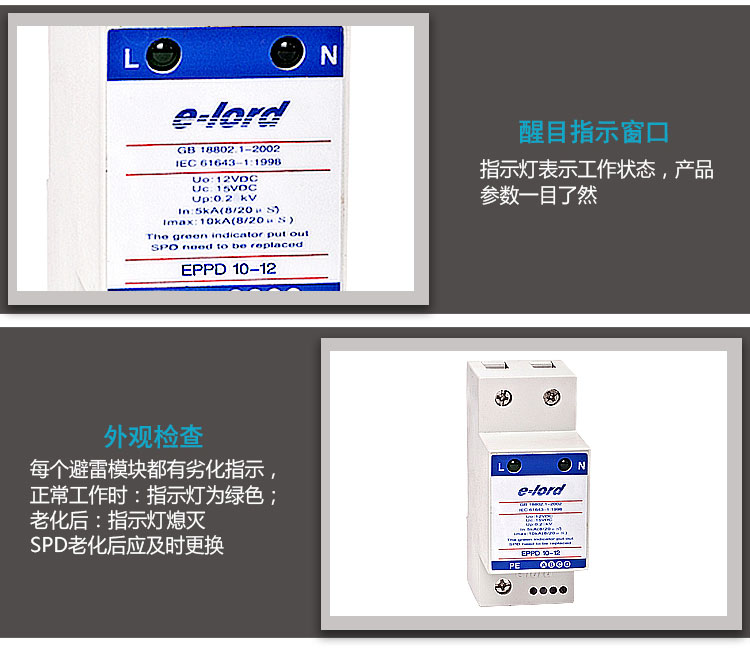 EPPD系列低壓直流型電源SPD是單體電源防雷模塊,防止感應(yīng)過(guò)電壓或操作過(guò)電壓對(duì)低壓交流用電設(shè)備的損壞。